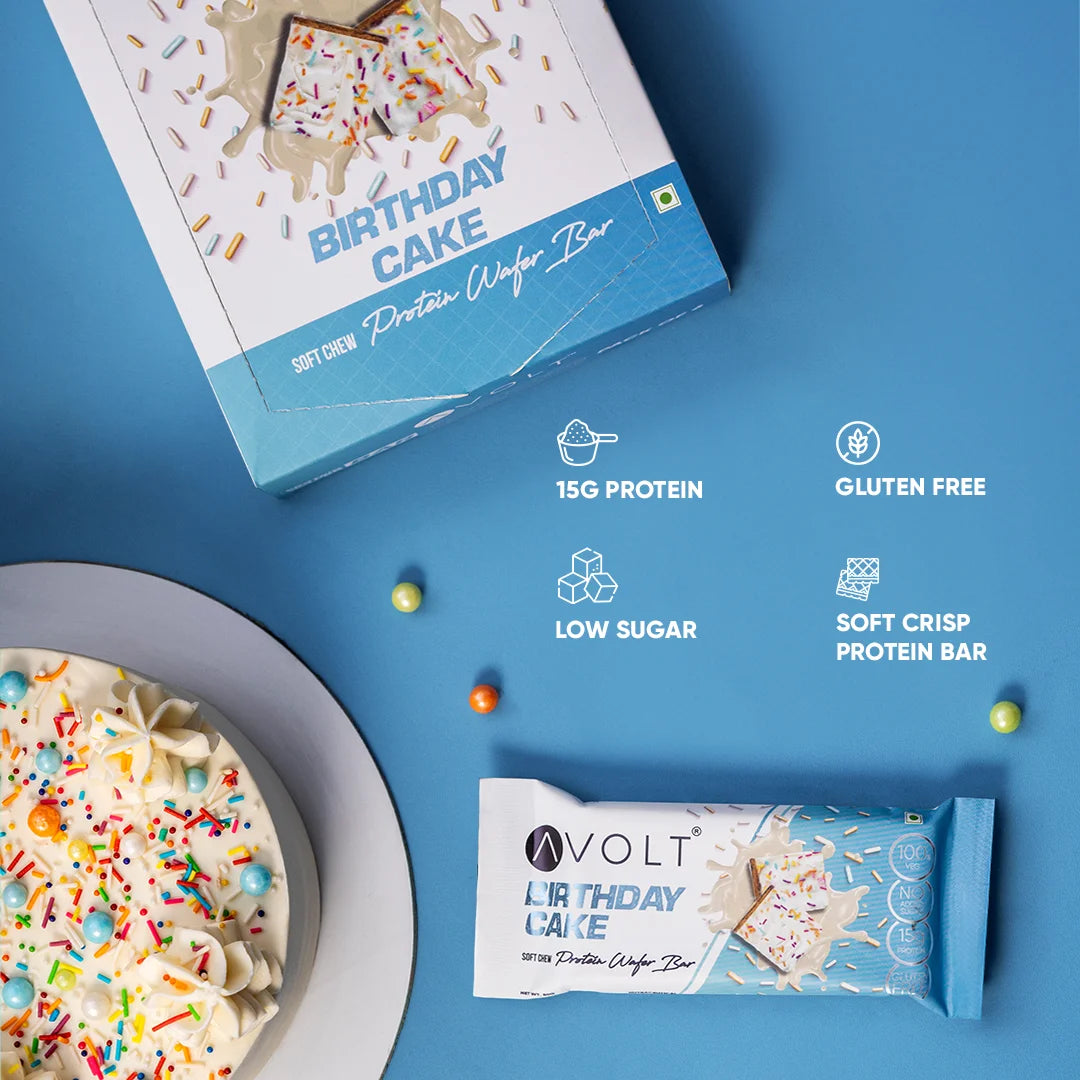 Celebrate every day with this protein wafer bar! Coated in white chocolate and bursting with birthday cake flavor, each bar delivers 15g of protein. Gluten-free, 100% vegetarian, and low sugar, it’s a treat without the guilt.